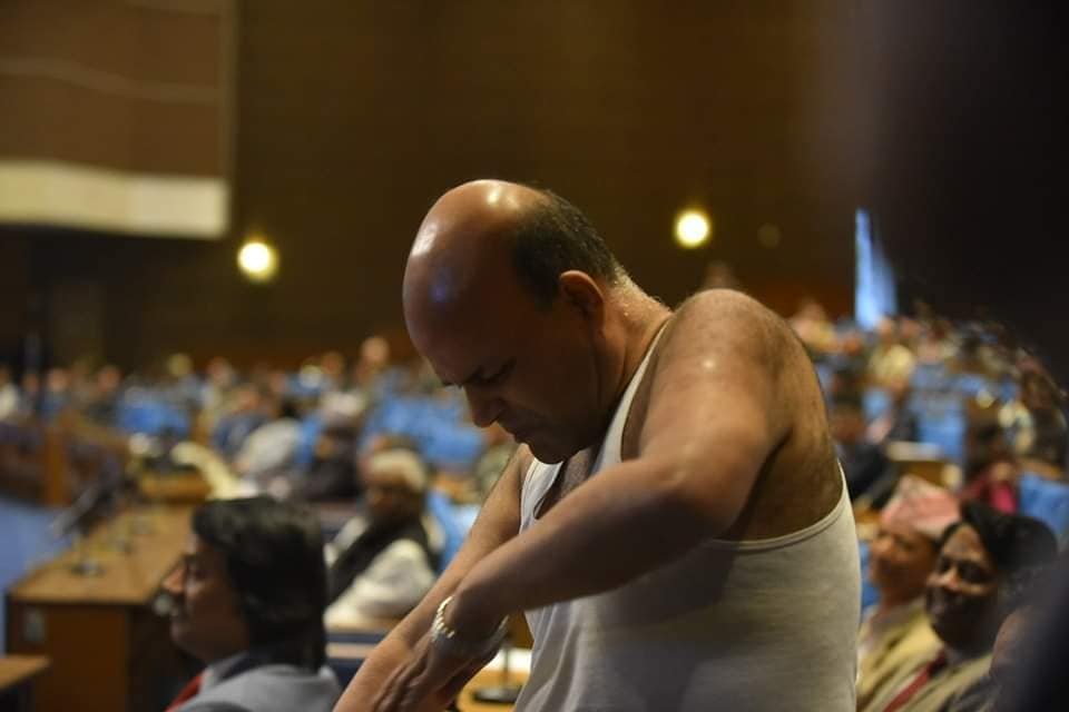 प्रतिनिधिसभा सदस्य अमरेशकुमार सिंहले संसद्मा कपडा खोलेर विरोध जनाएका छन् । सोमबारको प्रतिनिधिसभा बैठकमा सभामुखले बोल्न नदिएको भन्दै स्वतन्त्र सांसद सिंह संसद बैठकमै अर्धनग्न बनेका छन् ।
