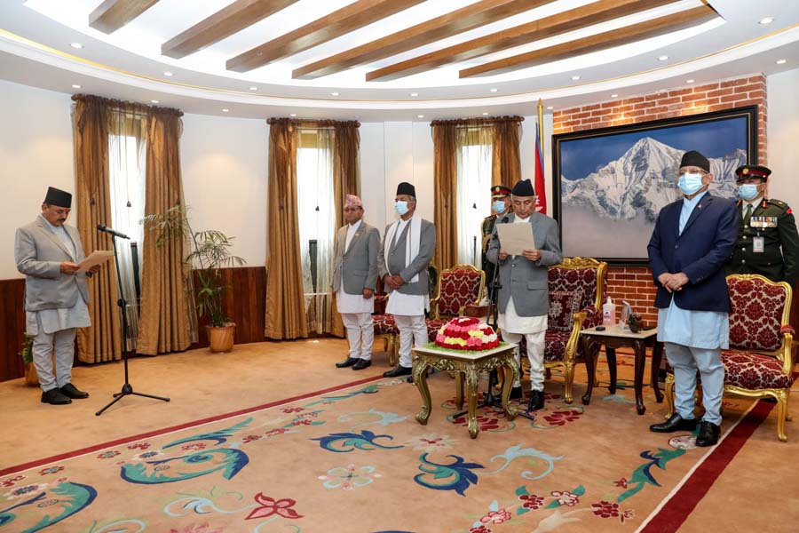 नेपाली कांग्रेसको कोटामा सरकारमा गएका नवनियुक्त तीन मन्त्रीले पद तथा गोपनीयताको शपथ लिएका छन् । बिहीबार उनीहरुले राष्ट्रपति कार्यालय शीतल निवासमा राष्ट्रपति रामचन्द्र पौडेलबाट शपथ लिएका हुन् ।
